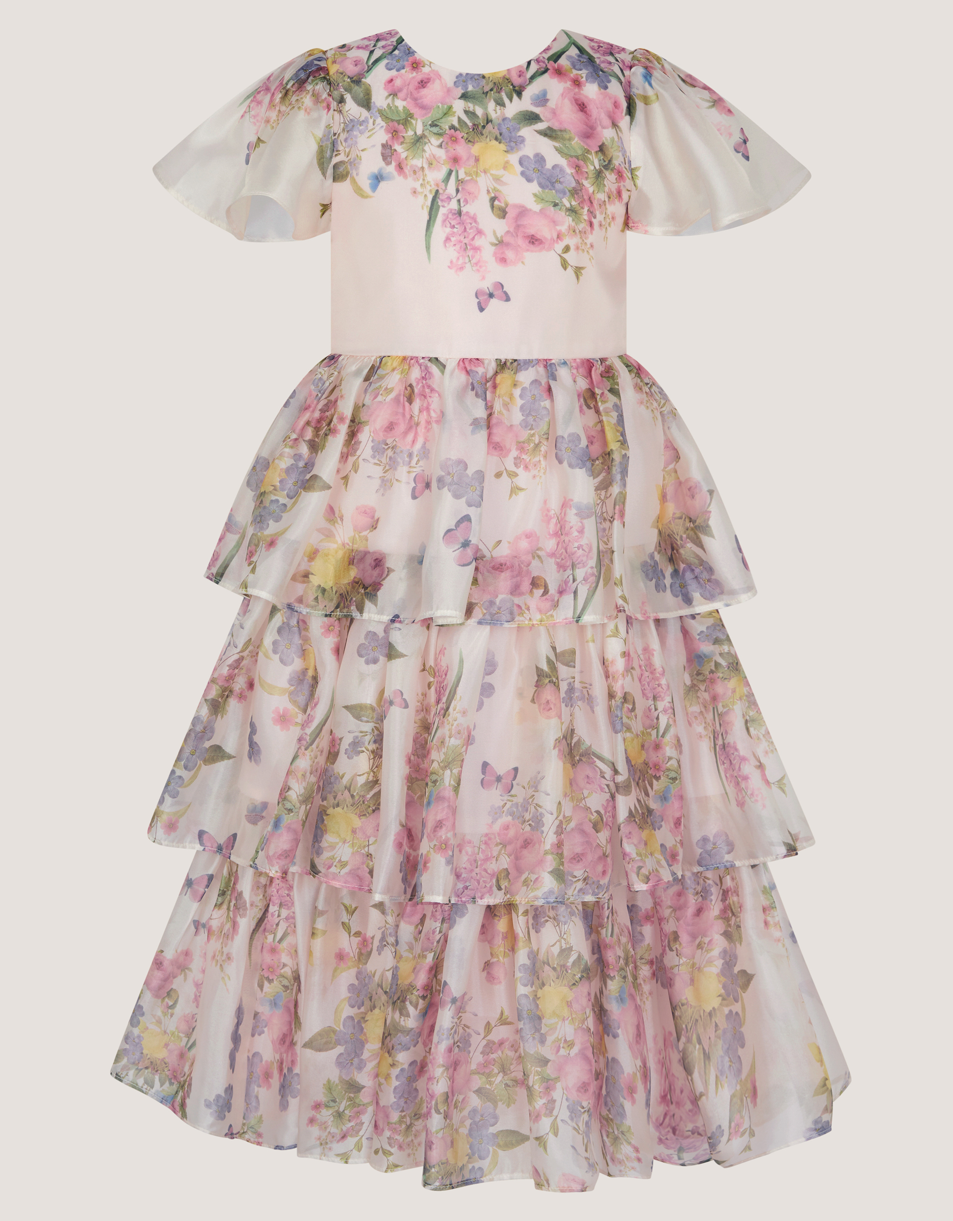 Flora and fauna. A head-turning pick that’ll earn them best-dressed at every occasion. Designed with flutter sleeves and twirl-worthy tiers around the hem, it’s patterned with beautiful flowers and butterfly motifs. Did you know? There’s a matching baby sister style available, too! Multi